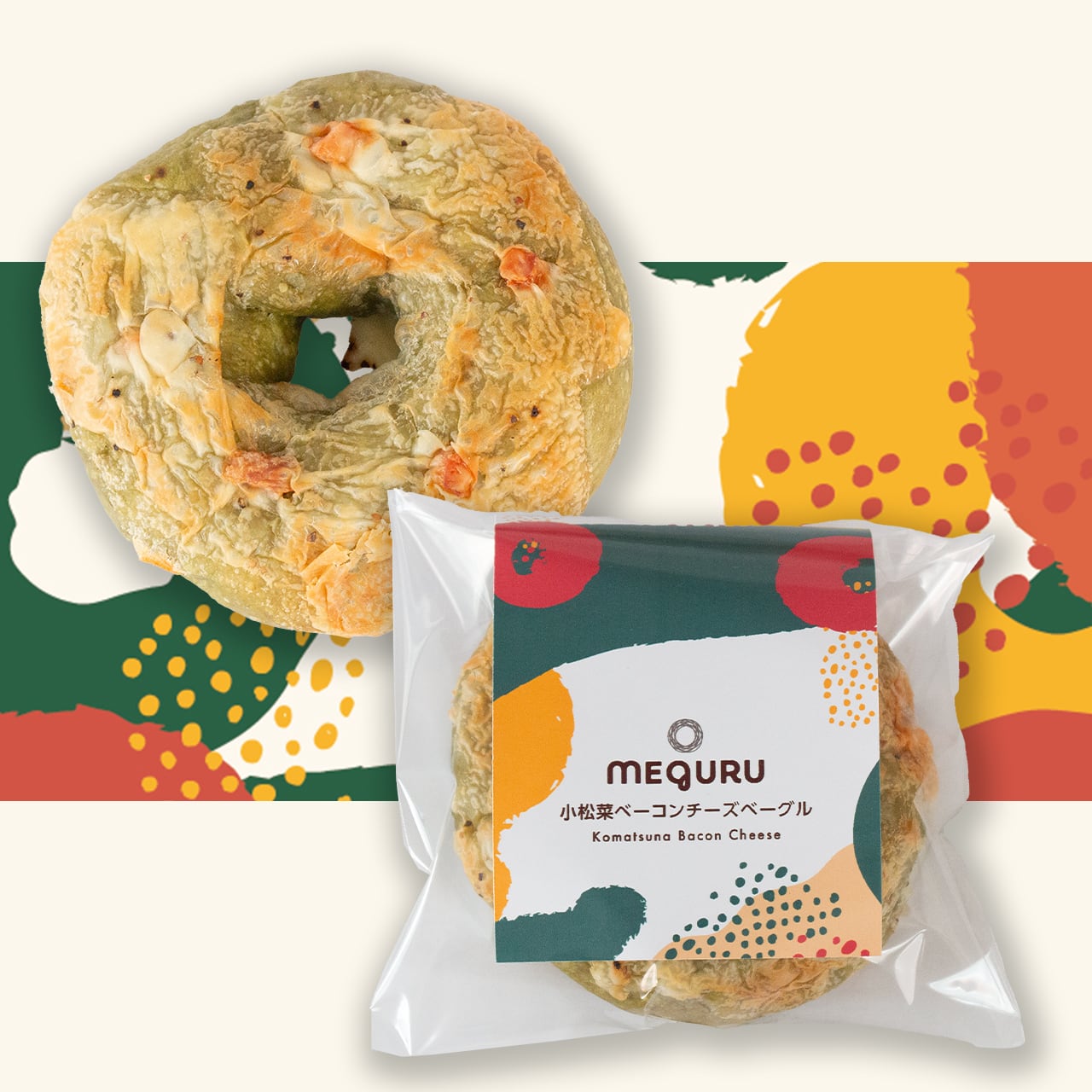 MEGURUベーグル 小松菜チーズベーコン 冷凍保存 たんぱく質13g 食物繊維 国産小麦 スーパーフード